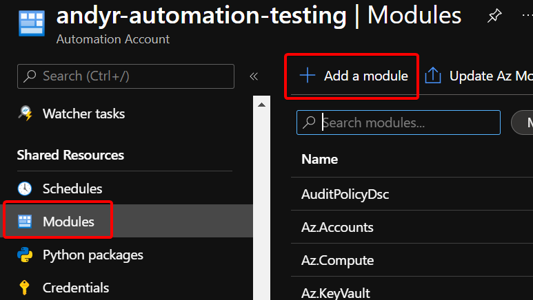 Now you had added your Runbook, you need to ensure that the Automation Account knows about the AZ.Sql Module so it can actually run the powershell cmdlets in the runbook.